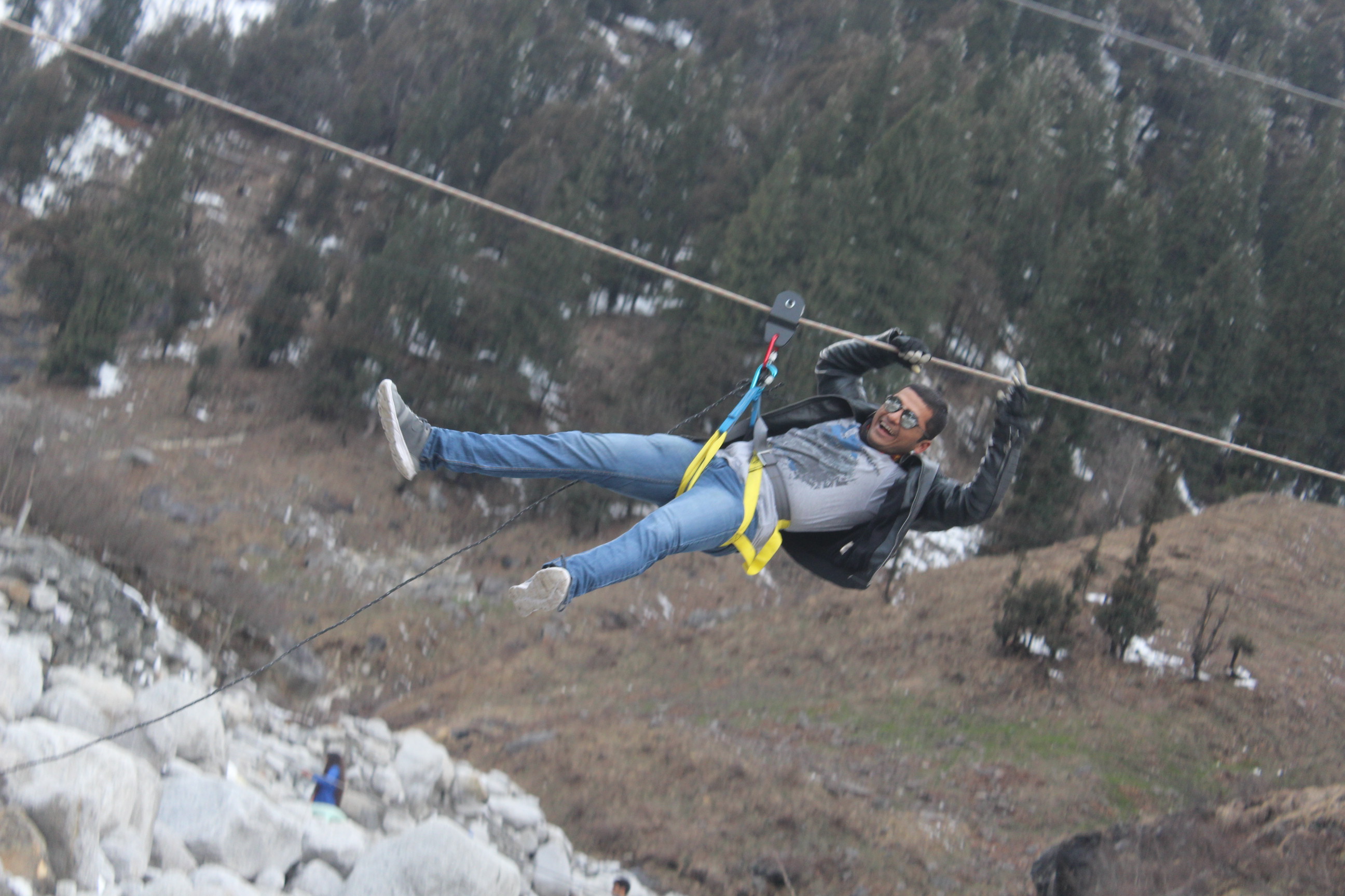 I successfully did Bungee in first attempt but the adrenaline rush did not stop there. After Bungee, i went for giant swing and India’s longest flying fox. Just like Bungee, Giant Swing was also located at a height of 100 metre on the same altitude. Its scarier to make the 2nd Jump because now you know how you are going to feel after jump. Ha Ha. Flying fox was also fun. It was a real long line. We kept on sliding for very long looking at the valleys like a Superman.