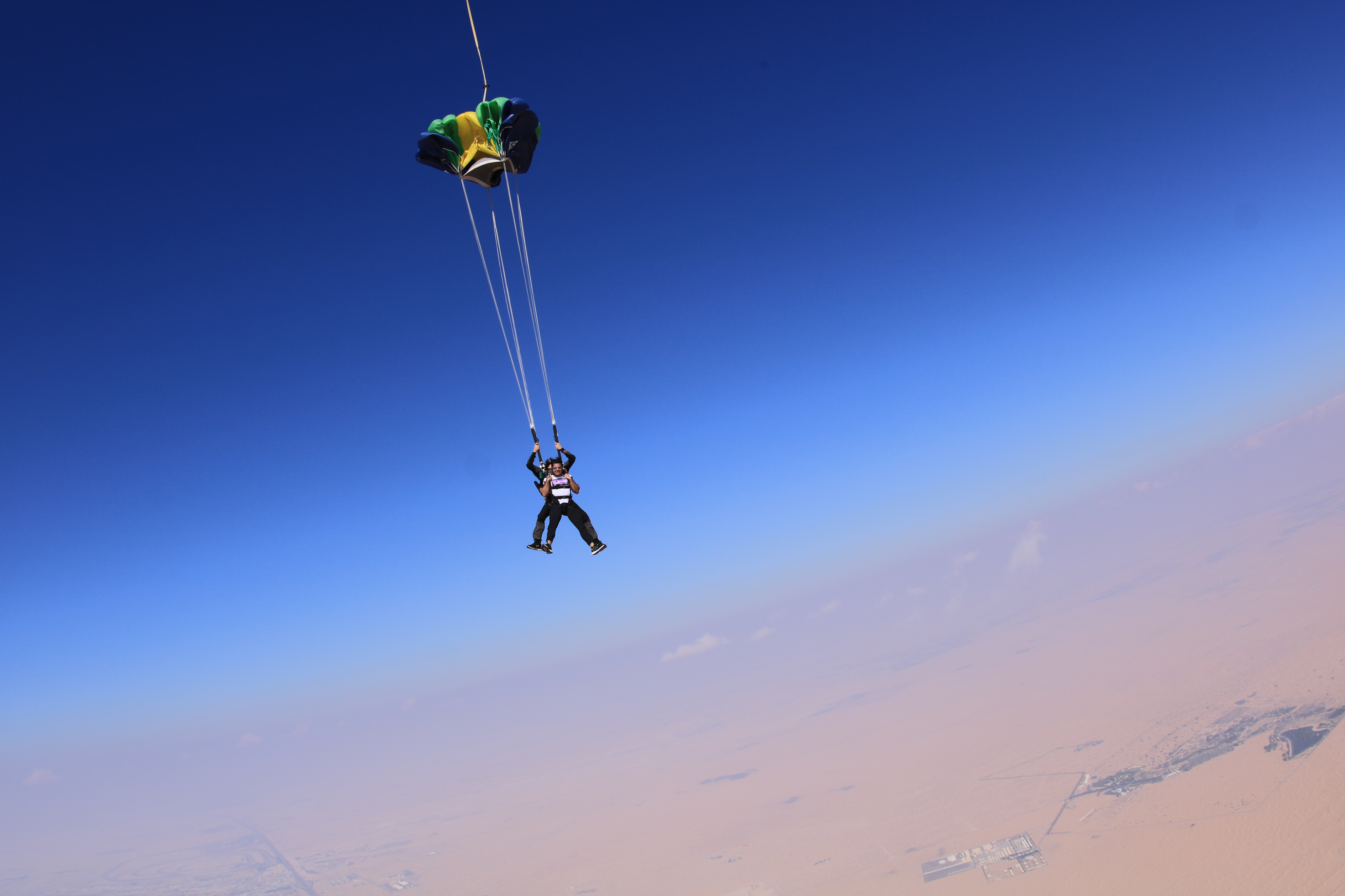 And we jumped. Right before me, my camera flyer Laura jumped facing backwards to record my jump. When i looked at her going down facing me, i got stunned. Damn, she looked so cool. Then me and Andy jumped. The free fall lasted for 60 seconds and then my diver deployed the chute. This is how i blew off my candles.